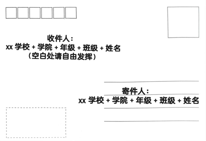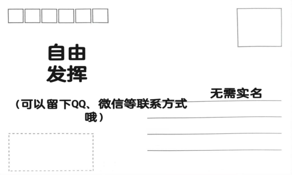 2.“漂流瓶”投递要求:由于“漂流瓶”明信片最终由学生会进行汇总随机邮寄,因此无需指定学校及个人,只需写出想写的内容,静待后续其他高校明信片分配到手中即可。(同学们可基于自愿原则在明信片上留下联系方式)