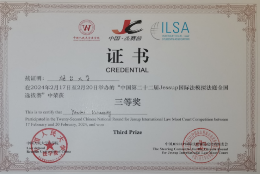 朱玲玲老师、陆寰老师带队。2014年获得“杰赛普”国际法模拟法庭国际比赛二等奖;2015年获得“杰赛普”国际法模拟法庭国际比赛二等奖,队员获Best oralist;2021年获得“杰赛普”国际法模拟法庭国际比赛三等奖;2024年获得“杰赛普”国际法模拟法庭国际比赛三等奖;2025年获得“杰赛普”国际法模拟法庭国际比赛三等奖。