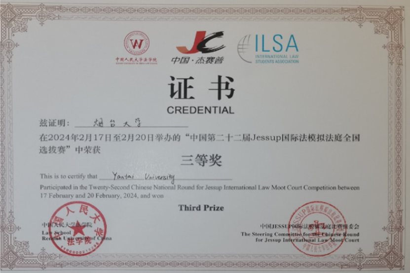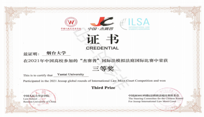 2014年获得“杰赛普”国际法模拟法庭国际比赛二等奖;2015年获得“杰赛普”国际法模拟法庭国际比赛二等奖,队员获Best oralist;2021年获得“杰赛普”国际法模拟法庭国际比赛三等奖;2024年获得“杰赛普”国际法模拟法庭国际比赛三等奖;2025年获得“杰赛普”国际法模拟法庭国际比赛三等奖。