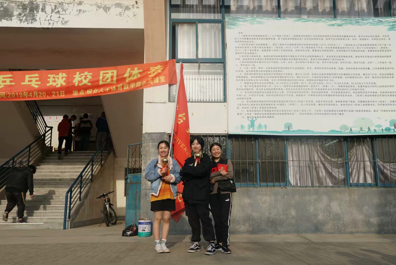 为了丰富同学们的课余生活,加深同学们对“国球”——乒乓球运动的理解和认识,校学生会在4月20号、4月21号于体教部乒乓球室组织了为时两天的乒乓球比赛。抖阴 突破重重阻碍,获得了男子团体季军和女子团体季军。