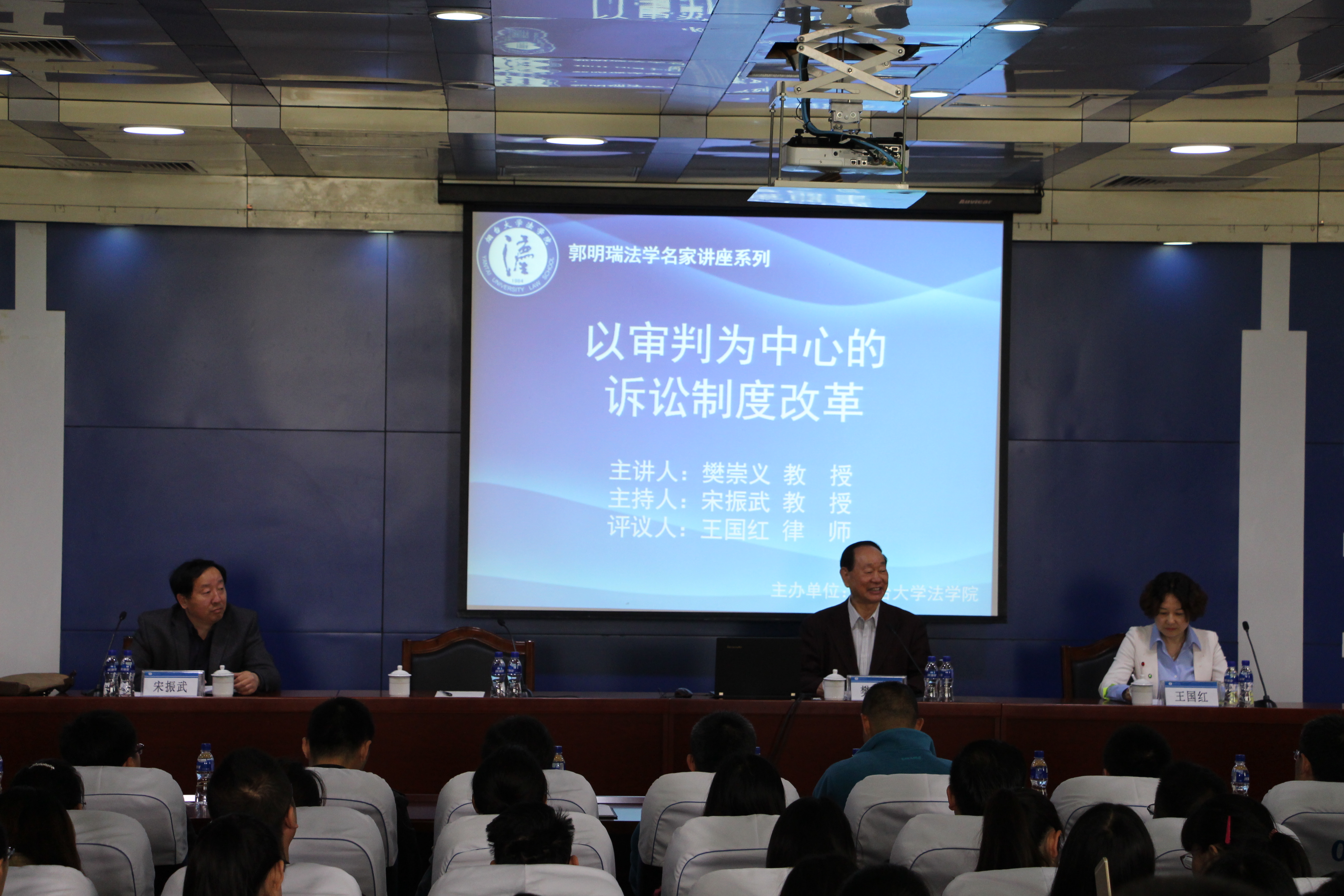最后,王国红对本场讲座进行了评议。她希望大家能够通过名家讲座拓展自己视野,时刻关注司法改革动态。在场学生也积极向樊教授进行了提问。整场讲座,樊崇义教授娓娓而谈,用新颖的话题、幽默风趣的语言,给大家带来了一场法学思想的盛宴。