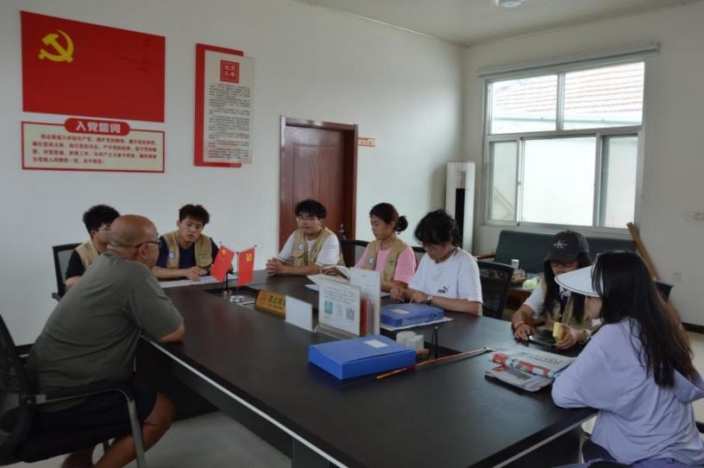 7月9日,团队小组前往烟台牟平区政法委、大窑村、南辛峪村等地,向政府采访学习、与村民们深入交流。政法委工作人员表示,当地正在努力完善土地流转相关法规,确保流转过程中的公平、透明,同时加强对农民权益的保护。随后,调研队携带专业设备对流转土地进行了基础检测,包括土壤肥力、重金属含量、灌溉条件等,以评估土地的生产潜力和环境健康状况。