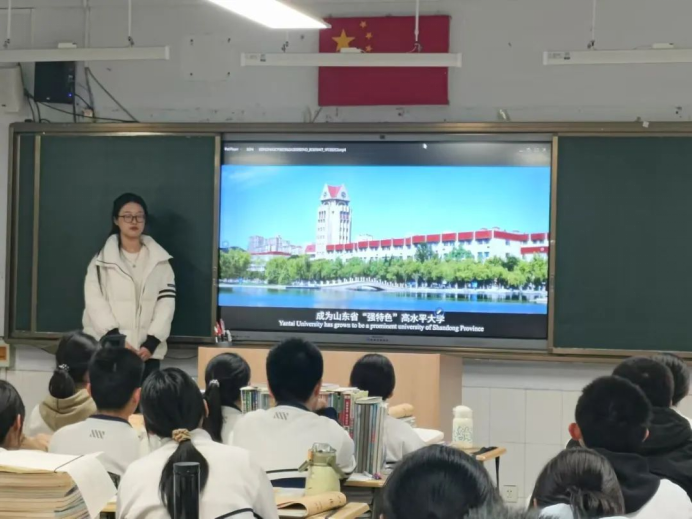 有了基本的了解。随后,宣讲人结合生动的视频图文资料与自己的大学生活经历向大家分享了自己的真实体验,让大家感受烟大浓厚的学术氛围和多彩的校园生活。最后,宣讲团的成员们为同学和老师们送上温暖,并向同学们分发了心愿卡和糖果,她们希望以这种形式来激励奋斗途中的少年们。