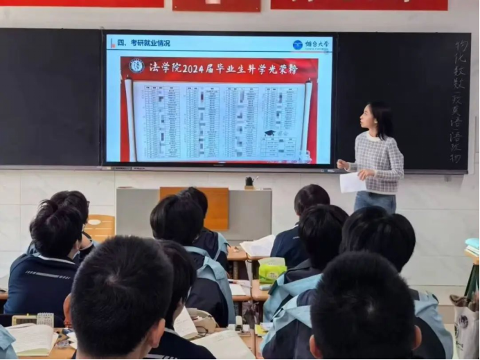 1月19日,宣讲成员法231-1班邵静然、法233-1班苏佳音、法241-2班胡雅淇及法243-2班曲奕晓前往烟台二中芝罘校区进行“引航计划”宣讲。