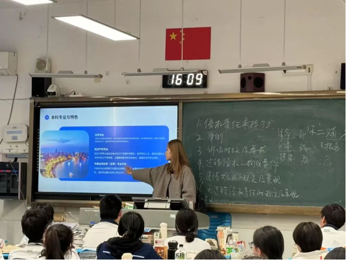 宣传片、各个专业的详细介绍、优秀校友风采展示以及招生政策解读等。宣讲人结合自身的学习经历,分享了自己的大学生活。在互动环节,宣讲成员认真解答了学弟学妹们的疑惑,让他们对大学生活有了更深入的了解。