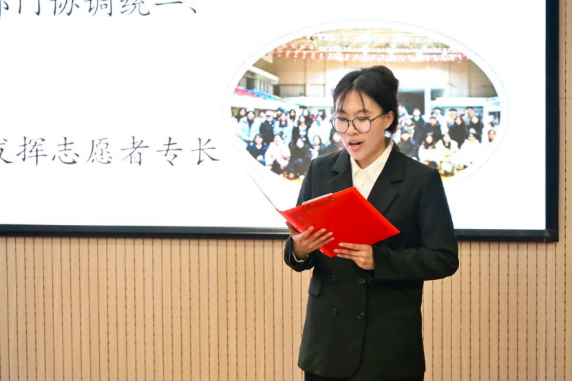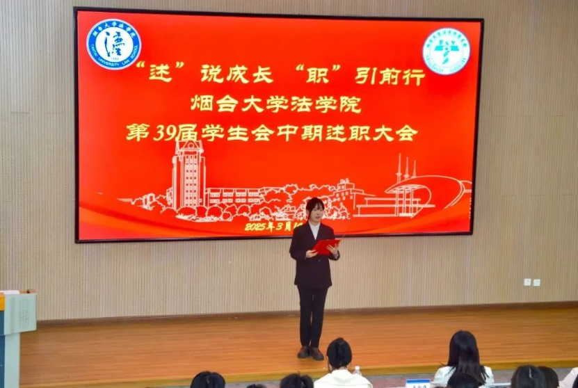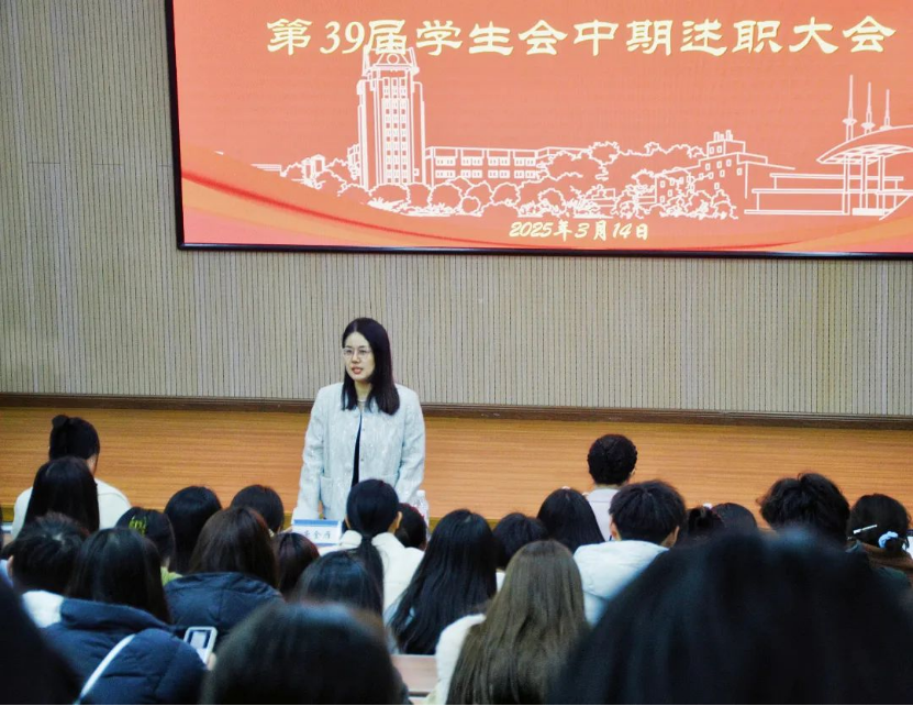 学生会指导老师李非非对学生会成员的辛苦付出表示感谢,希望学生会成员未来在理论与实践当中增强本领、增长才干,努力成长为有责任担当、有使命追求、有自我约束的学生骨干。学生会主席团成员张雨橦从“思想引领”“学风建设”“文体并举”“权益服务”四个方面做工作汇报。随后,学生会各部门依次上台述职,从工作成果、所遇问题、改进措施以及未来规划等多个方面进行汇报。