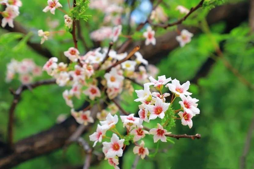 在烟大,图书馆的静谧、三元湖的灵动、晚霞的绚烂,都是值得打卡留念的校园美景。如今,在学校南门正对着的草坪上,又多了一处“法味”满满的打卡点——法治树!这棵“法治树”身姿挺拔,叶片翠绿。待到花期,满树繁花,白色的花瓣基部紫红色或黄色,鲜艳夺目,香气四溢 ,为校园增添了一道亮丽的风景线。无论是阳光明媚的早晨,还是落日余晖的傍晚,与“法治树”合影留念,都能定格下最美的瞬间。