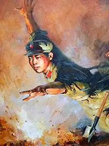 陈列馆核心展区聚焦1965年7月14日。通过历史照片、现场还原模型及实物陈列,完整呈现了王杰在江苏邳县张楼公社组织民兵地雷实爆训练时,炸药包突发意外险情的关键时刻。当导火索意外点燃,王杰在不足1秒的反应时间内,毅然扑向炸点,用身体掩护了在场的12名民兵和人武干部,英勇牺牲。展柜内,其牺牲时携带的严重变形钢笔、被炸碎的血衣残片等遗物,无声诉说着牺牲的壮烈。部队提供的历史档案显示,王杰牺牲时年仅23岁。在再现当年爆炸事件的展板前,队员们认真聆听着十二位幸免于难的民兵和人武干部的名字,看着爆炸瞬间的站位图,于小涵同学不禁感慨王杰扑向炸点时意志的坚定。