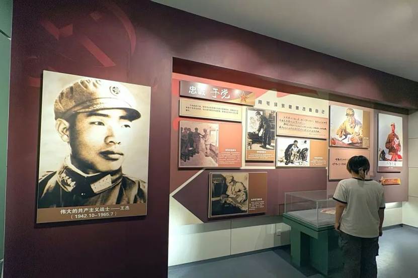 场馆的下一部分介绍了王杰的生平。展馆通过场景复原、日记摘抄、课本收集等多种形式,展现了他从小学时拾金不昧,到长大后毅然放弃高中入学机会参军入伍,在学习过程中始终怀揣的爱国热情,以及其成长时的艰苦生活环境,生动诠释了王杰“一不怕苦,二不怕死”精神的形成历程。王杰在日记中写道,“为了党,我不怕进刀山入火海;为了党,哪怕粉身碎骨我也心甘情愿”,字里行间尽显忠诚与担当。
