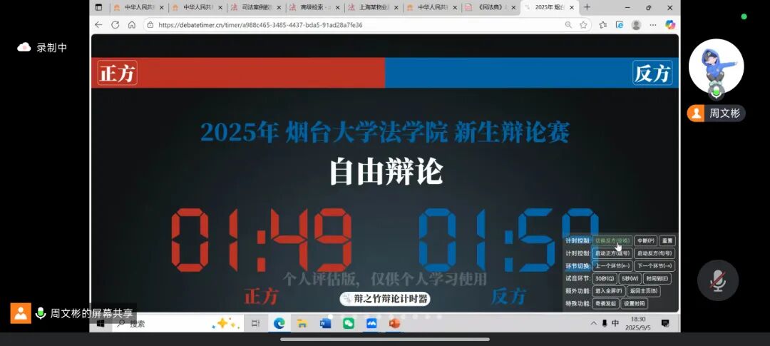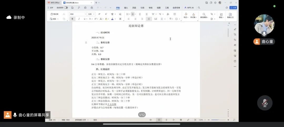 比赛当日,在各班导助和辩论社成员的共同主持下,新生辩论赛通过线上会议开展。