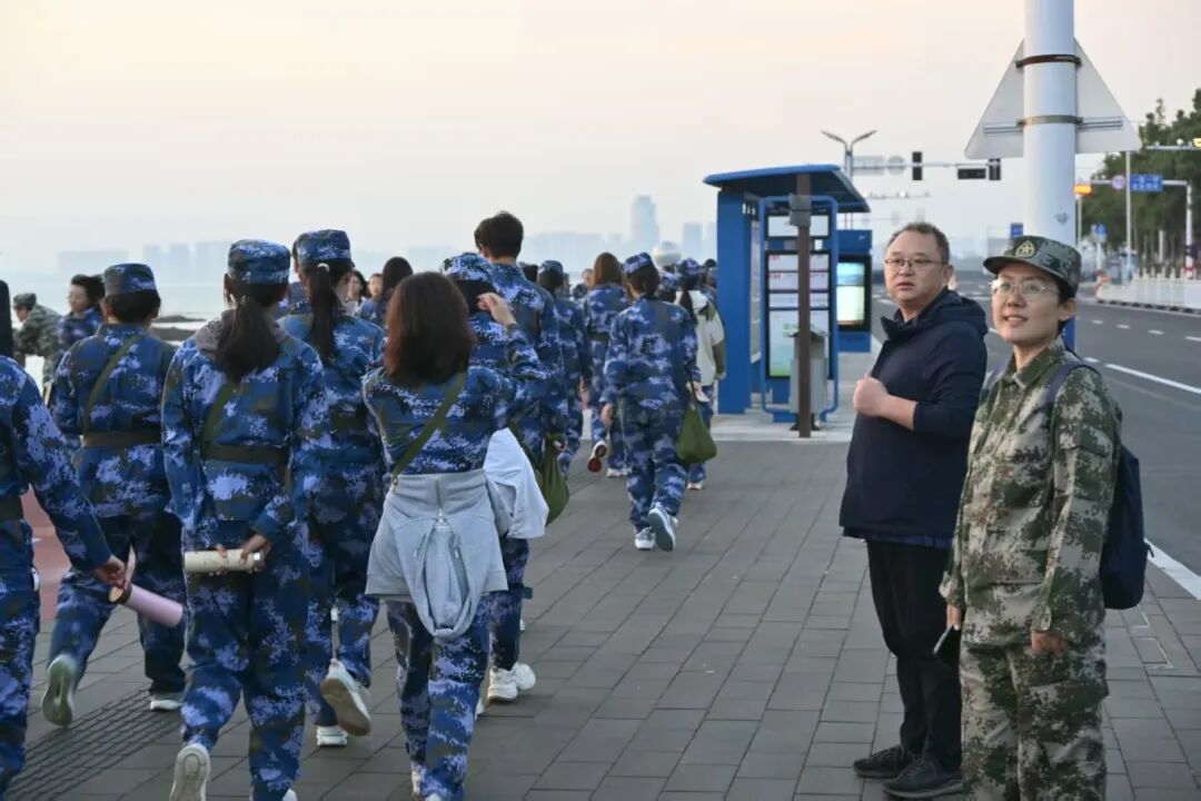 本次拉练,马克思主义学院教师随行,将坚韧品格与爱国主义的培养融入沿途军舰讲解;体育学院教师时刻关注队伍节奏,指导呼吸,用专业知识帮助大家保持体力,磨砺意志,践行“阳光体育”。黄海游乐城补给点,后勤处提前准备的姜汤暖心上线,志愿者们递上的热饮驱散了秋日夜晚的微凉。学院还贴心配备了巧克力,为同学们及时补充能量。全程陪伴在侧的,还有学院领导与辅导员、班级导师们的身影——他们走在队伍前后,全程护航,一句句“坚持住,加油”,让这场考验体力的拉练,满是并肩同行的温暖,更为学院新生带来一场别开生面的“行走的思政课堂”。