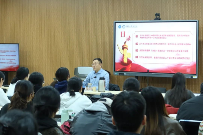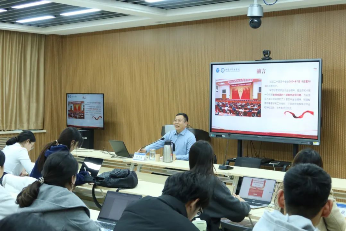 党的二十届三中全会2024年7月15日至18日在北京召开。此会议在以中国式现代化推进强国建设、民族复兴的关键时期召开,是全面深化改革、推进中国式现代化的总动员与总部署。段志国书记以习近平总书记在党的二十届三中全会上的重要讲话精神为切入点,深入浅出地引导学生深刻认识全会以来党和国家事业取得的重大成就,让抖阴