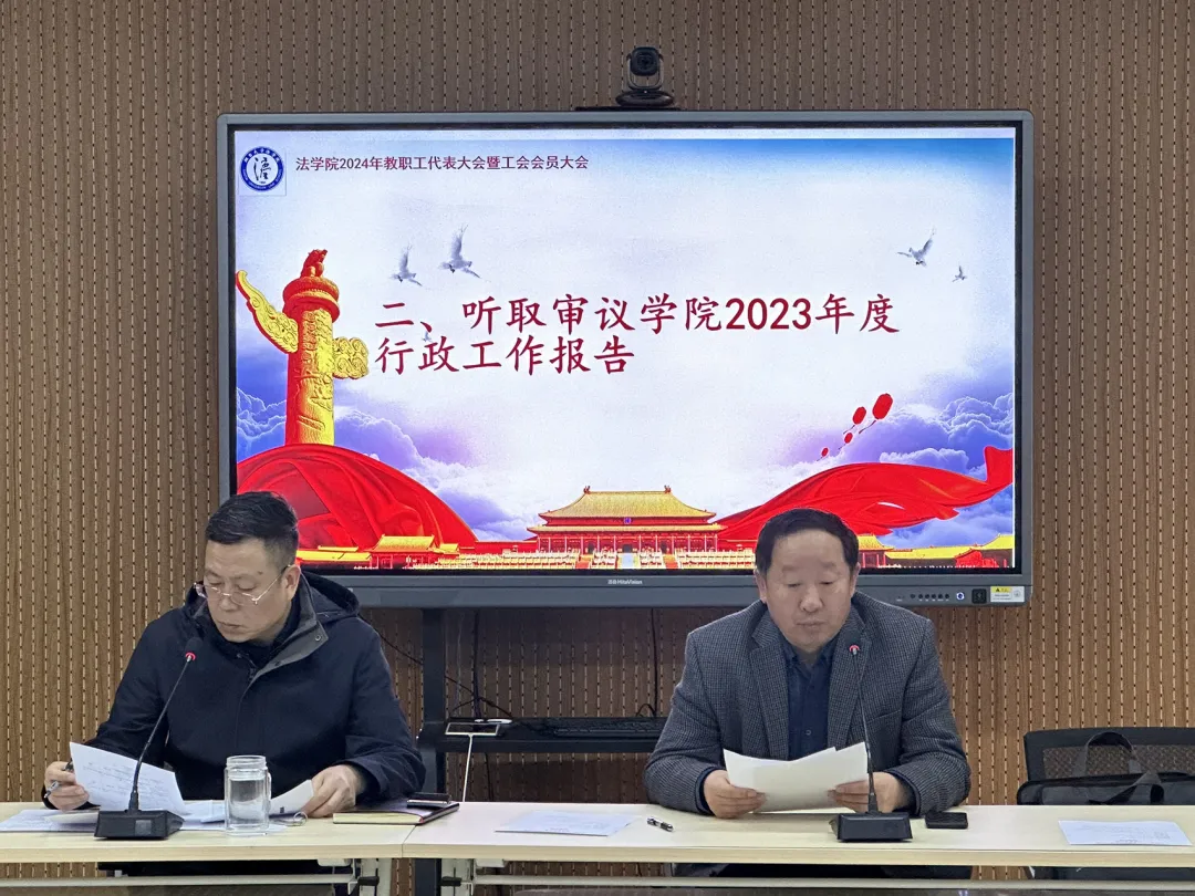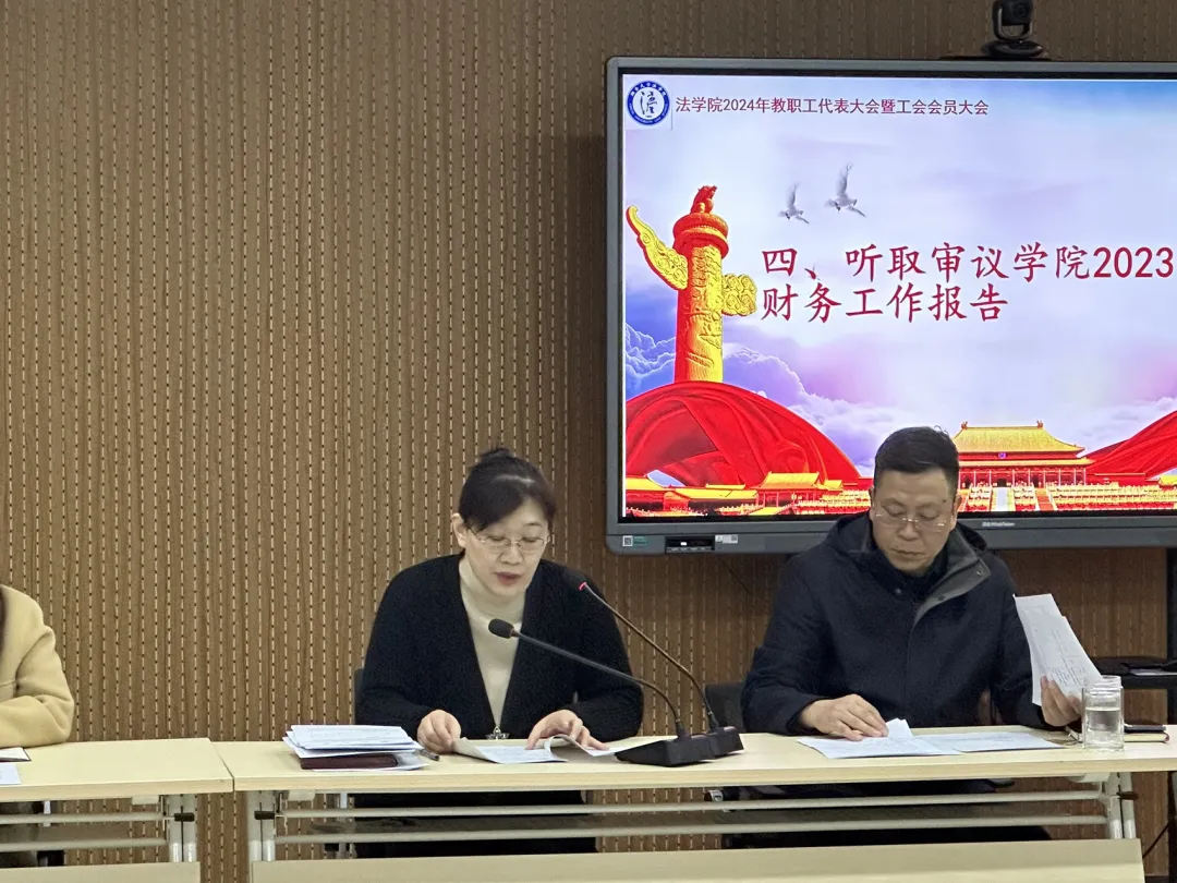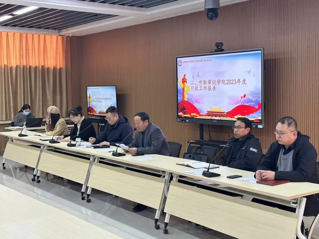 2023年度工会工作报告》,报告全面总结过去一年工会取得的成绩、不足和今后的工作思路;学院办公室副主任、财务助理田华栋作《抖阴