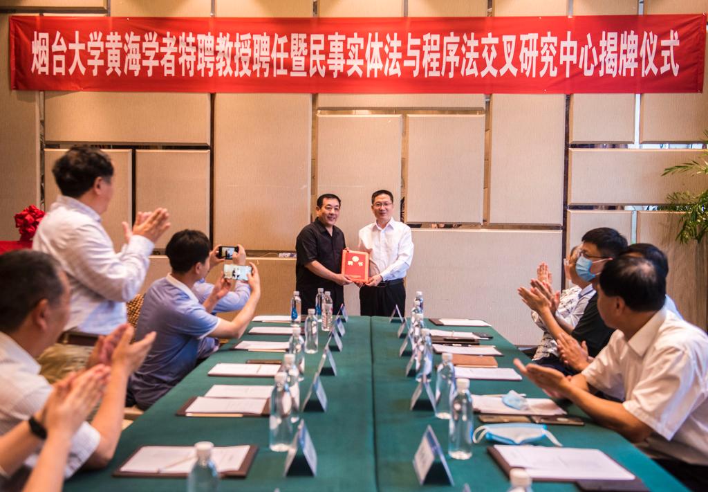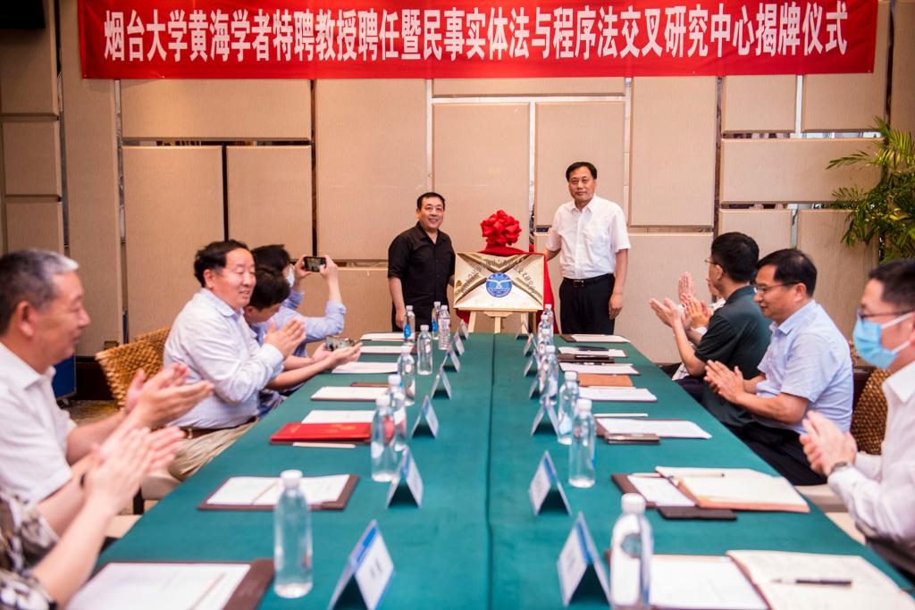的渊源,对学校的发展成就予以肯定,表示将履行好黄海学者特聘教授的职责,为学校法学学科的建设发展、法学教育与科学研究作出自己的贡献。