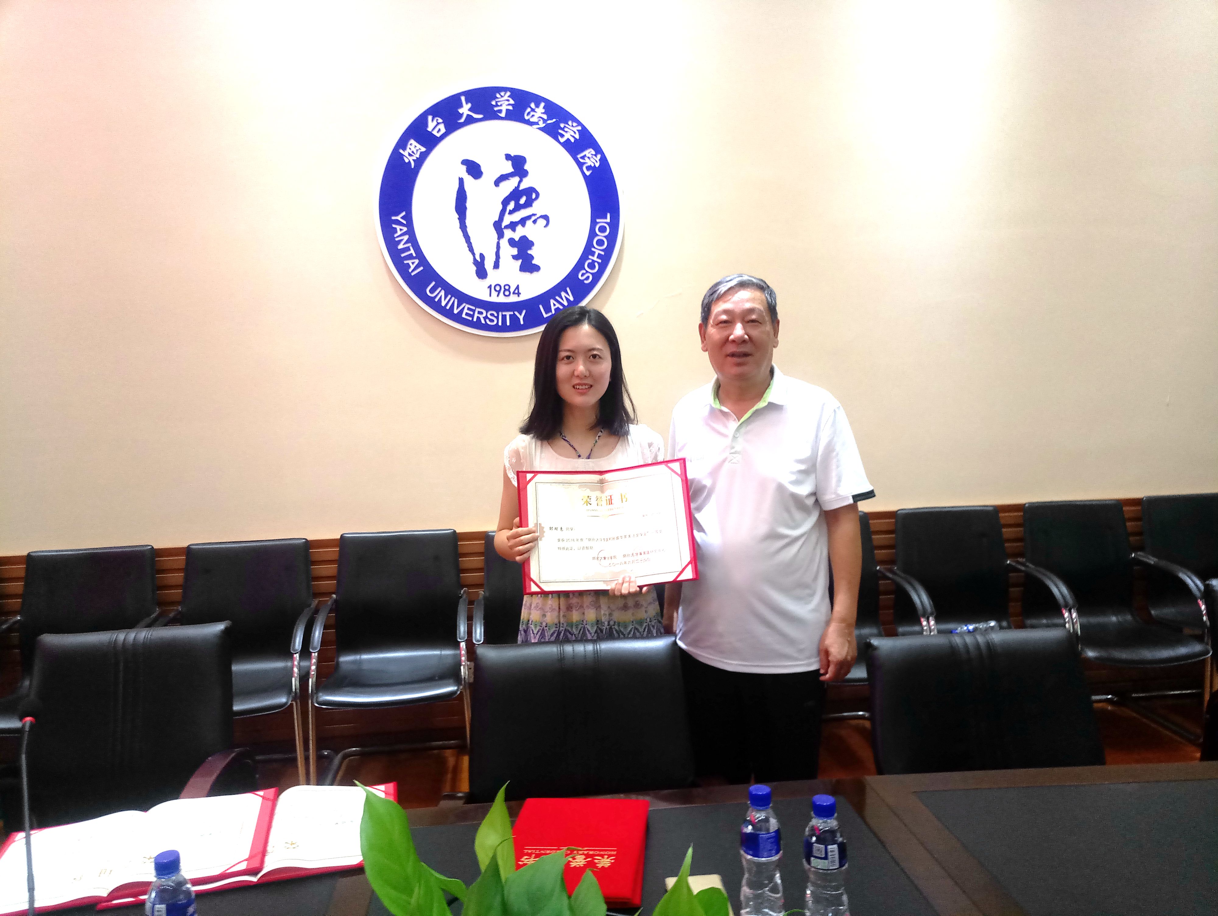致力于学习研究英美法并取得优异成绩的同学而设立的专项奖学金,该奖学金目前已经颁发六届。本届“李国利、孙盛华英美法奖学金”共有六名同学获奖。邵琛惠、任晓君同学获一等奖,奖金2000元,赵婵、王铭凯同学获二等奖,奖金1500元,付晶、刘世超同学获三等奖,奖金1000元。张仕祯书记、刘经靖院长分别为同学们颁发了奖学金和毕业证书。