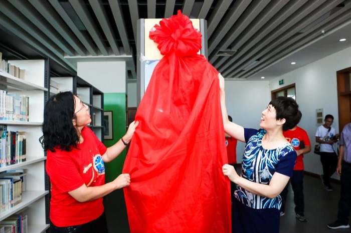 的帮助和关注表示衷心的感谢。法942班校友代表李富成发言,表示非常高兴回到母校与昔日同窗相聚,并介绍了捐赠图书的初衷与用意。刘瑞伟校友、张仕祯书记作为双方代表签署并互换了捐赠协议。最后,在“仰望星空——法942班捐赠专区”,党委统战部部长兼校友办主任李育华和法942班校友代表于秀丽共同为“仰望星空——法942班图书捐赠专区”隆重揭幕。