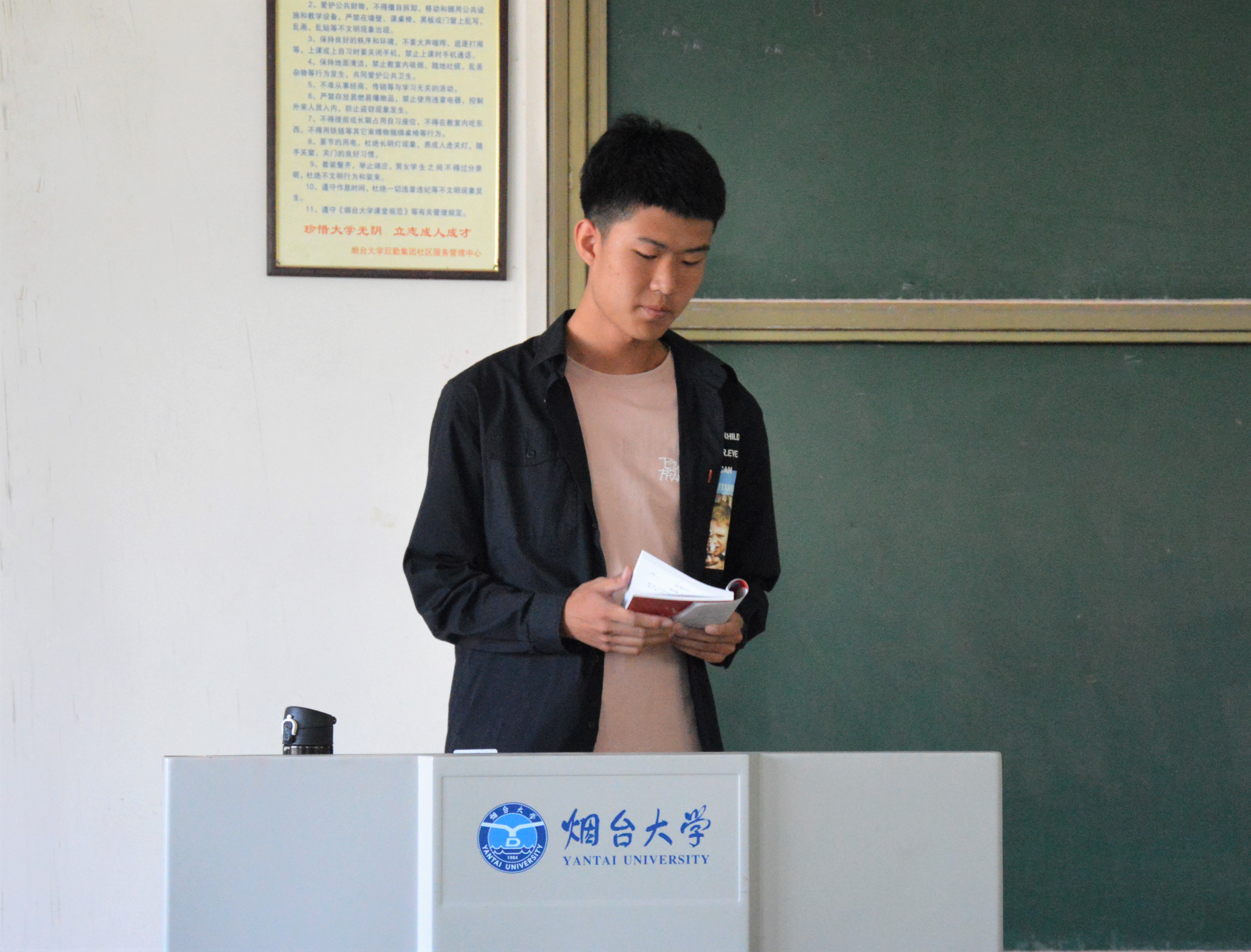 培训伊始,2018级自律部刘其瑶率先向2019级新生们宣读了学生手册中关于纪律的条例,并给同学们细致全面的介绍了条例中的具体标准和违反后果,并提到了学生会自律部具体职责,让同学们对学院的管理制度有了更明确的认识。2018级生活权益部苑鹏宇则向新生们讲解了宿舍卫生注意事项,并分享了许多关于宿舍安全方面的经验与心得,提醒新生们注意安全用电等宿舍问题。最后,2017级学生会主席刘晓洲给新生们讲解了抖阴