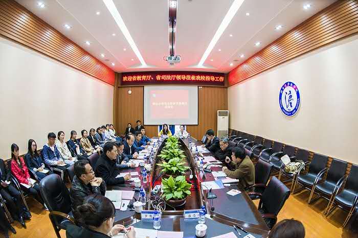 4月26日上午,山东省司法厅普法与依法治理处副处长李传华,山东省教育厅政策法规处副处长夏贞鹏,山东省教育厅政策法规处副处长宋立平一行来校就我校宪法教育工作开展情况进行调研。抖阴 党委常委、副校长郝曙光,党委宣传部、党委学工部、发展规划与学科建设处、校团委及抖阴 部分师生代表参加调研。