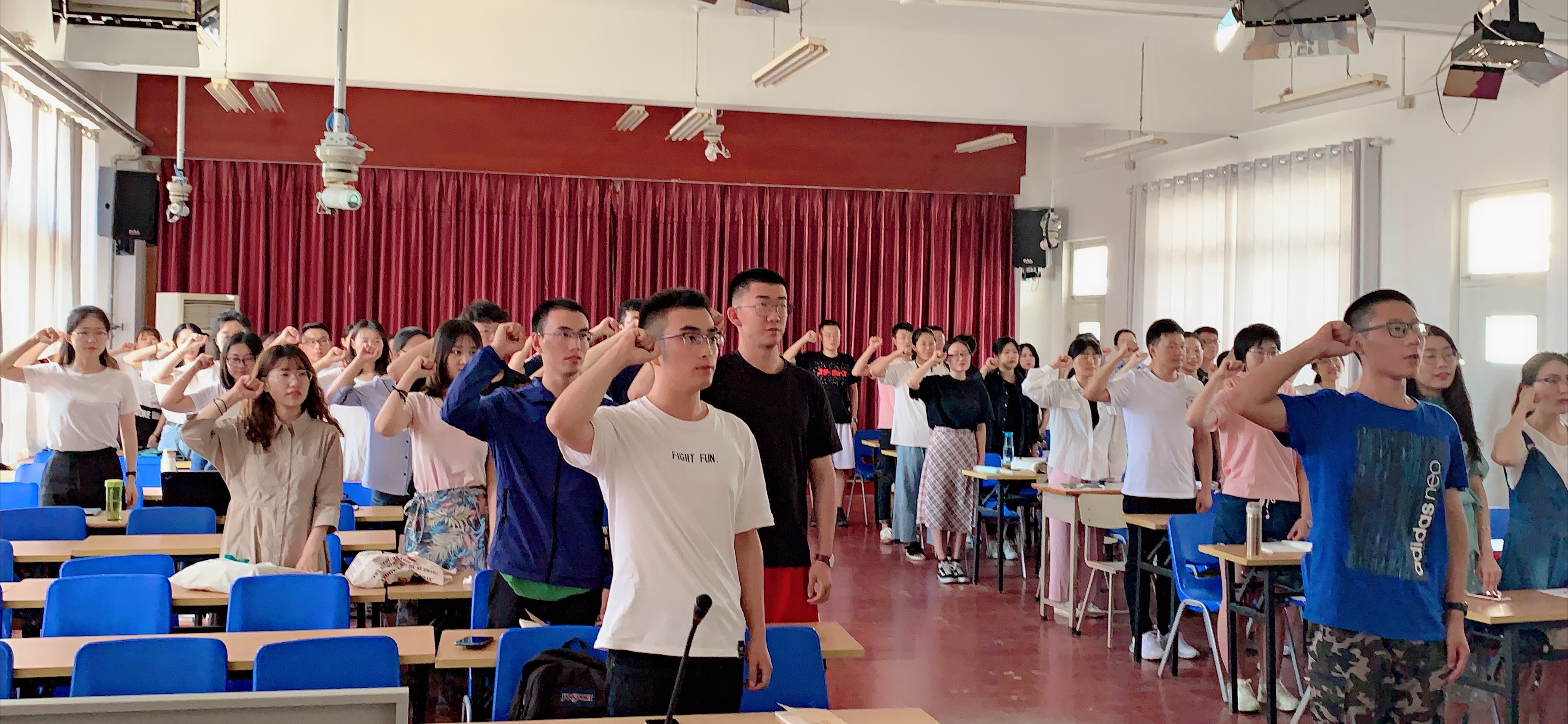 活动伊始,伴随着动人悠扬的旋律,党员与入党积极分子共唱《没有共产党就没有新中国》,气势恢宏、凝神聚气的歌声既唱响了爱国爱党的主旋律,也充分展现了抖阴