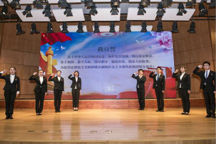 抖阴 “谠言直声”宪法宣讲团开讲 4月25日晚,抖阴 “谠言直声”宪法宣讲团首场宣讲报告会在韶乐厅举行。山东省教育厅政策法规处副处长夏贞鹏,山东省司法厅普法与依法治理处副处长李传华,山东省教育厅政策法规处副处长宋立平,抖阴 党委常委、副校长郝曙光,党委宣传部、党委学工部,抖阴 党总支书记张仕祯,副院长刘经靖以及学院老师与三百位师生代表一同参加了本次活动。 宣讲团成员从不同的角度分别阐述了自己对宪法的理解,将白纸黑字和冰冷条文转化为充满激情的演讲、充满逻辑的说理、充满幽默的解读、充满士气的宣言。宣讲团成员刘畅同学以宪法历史为载体,以私有经济的发展变革为主线,描绘了一幅波澜壮阔的宪法历史画卷;赵文华同学的讲述,让同学们真切感受到宪法并不遥远,宪法就在我们心中;于东民同学从宪法的义务方面,向同学们介绍了我国的服兵役制度,阐发了青年热血、家国情怀;陈禹洲、邢恩昊两位同学用新闻播报的形式,寓教于乐,风趣幽默地梳理了宪法内容,博得阵阵掌声;刘一霏同学把握住受教育权这一宪法权利,层层递进,让同学们感受到受教育权神圣不可侵犯;臧曼亦、苑鹏宇等同学的朗诵声情并茂、发人深省;最后,杜秋雨同学以“守护公民权利,树立宪法威严”为题,呼吁与时代同频,更要与时代共振,法制中国的路,我们一起走!最后,“谠言直声”宪法宣讲团团长倪鹏与宣讲团全体同学上台,带领全场进行了庄严的宪法宣誓,为本次宣讲会画上了一个圆满的句号。 为深入学习贯彻习近平新时代中国特色社会主义思想和党的十九大精神,推进社会主义法治国家建设,积极落实“七五”普法规划中“突出学习宣传宪法”的主要任务,根据《山东省教育厅关于印发〈全省教育系统宪法学习宣传和贯彻实施方案〉的通知》精神,校党委宣传部、党委学工部和校团委以抖阴 为依托,于2018年12月4日(第五个国家宪法日)当天正式成立了抖阴 “谠言直声”宪法宣讲团(以下简称“宣讲团”)。目前宣讲团共有团员10人(均为抖阴 本科学生),其中2人为第三届全国“学宪法、讲宪法”比赛个人赛亚军和团体赛二等奖获得者,其余团员均到全国赛现场观摩,专业功底扎实;并专门聘请了抖阴 宪法学专业老师担任宣讲团指导教师,专业实力雄厚。 宣讲团采用“学生讲给学生听”的理论宣讲的生动形式,坚持从学生中来,到学生中去,宣讲内容既有理论高度,又有现实意义,是探索创新高校思想政治工作方式的一次有益尝试。宪法不只高高在上,也应深入人间;宪法不仅刚性威严,也应人性慈爱。宪法不能束之高阁,需要掷地有“声”。