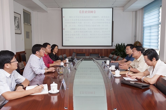 市人大常委会副主任于旭华就我市地方立法工作基本情况进行了介绍,指出双方共同设立“地方立法基地”的意义。房绍坤校长对双方在地方立法方面的合作基础、合作条件以及合作前景等进行了介绍。范李瑛书记就抖阴 的基本情况进行了介绍,随后双方就建立烟台市地方立法基地的具体事宜进行了商谈和交流。