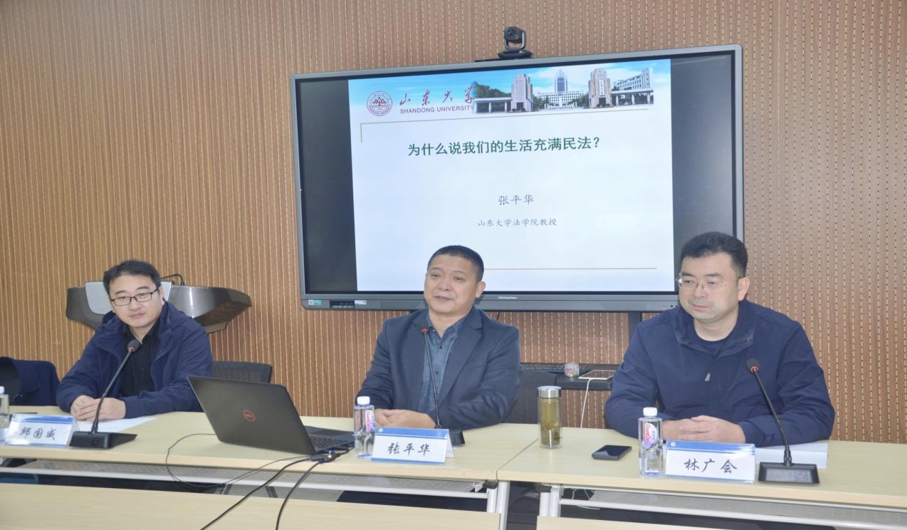深厚的情感,并提出了“为什么说我们的生活充满民法”这一问题。随后,张教授提出了“宏观民法”的概念,并阐述了民法体系在现代社会所面临的新挑战。紧接着,张教授讲述了民法的来源、历史,并指出我国民法应满足现实的强烈需求,体现中国特色,弘扬社会主义核心价值观。最后,张教授列举了我国民法典司法实践的案例,并分析了民法在现代社会所面临的问题和思路。
