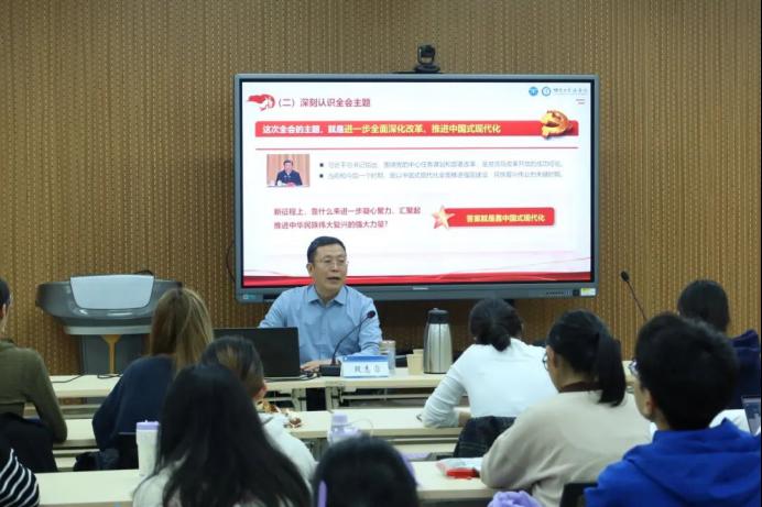 党的二十届三中全会2024年7月15日至18日在北京召开。此会议在以中国式现代化推进强国建设、民族复兴的关键时期召开,是全面深化改革、推进中国式现代化的总动员与总部署。段志国书记以习近平总书记在党的二十届三中全会上的重要讲话精神为切入点,深入浅出地引导学生深刻认识全会以来党和国家事业取得的重大成就,让抖阴