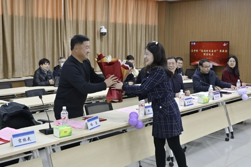 颁发仪式上,杨恩校友向优秀教师颁发奖教金,并向获奖教师表示祝贺。