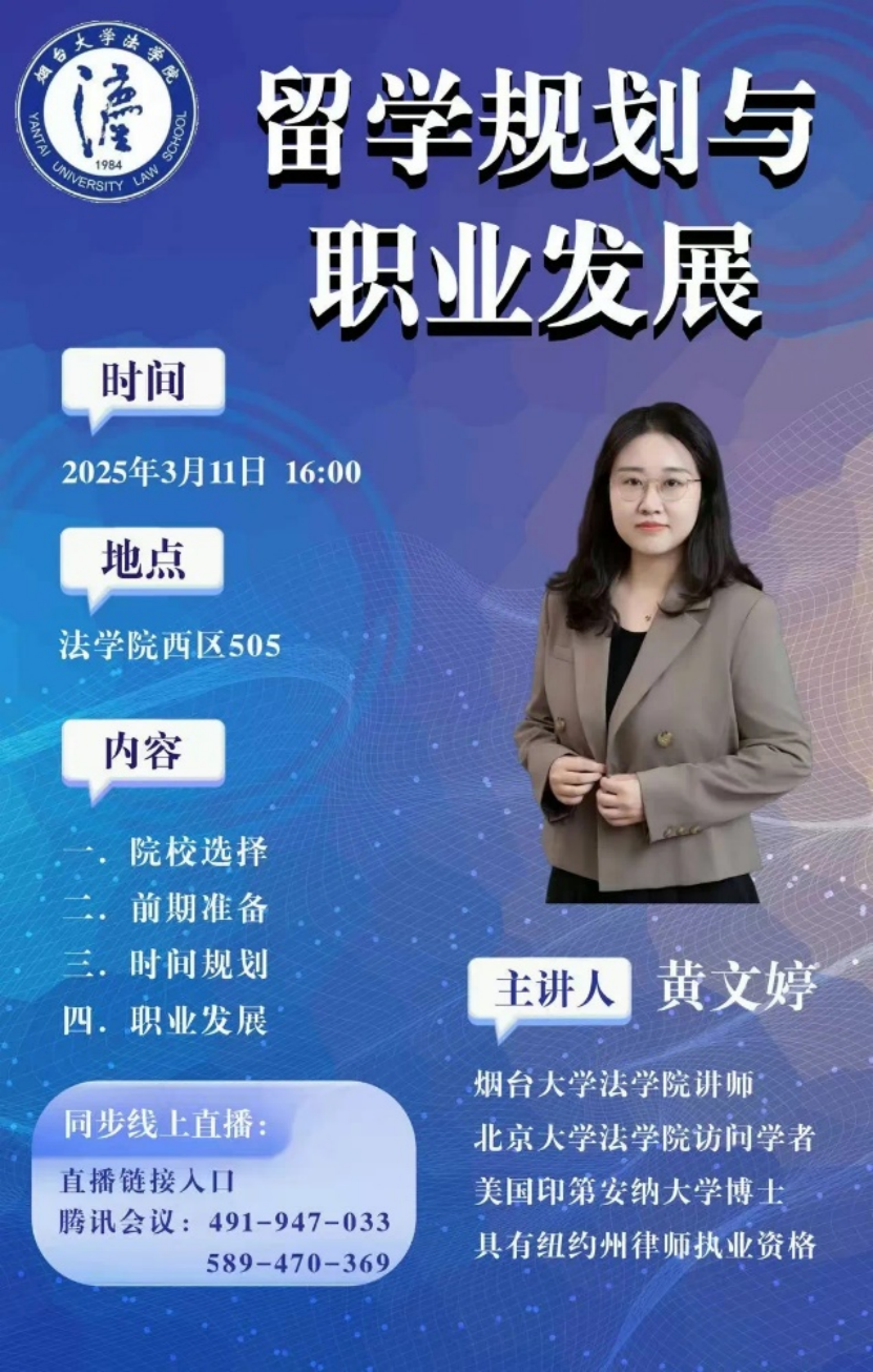 学院校友覆盖政法机关、知名律所、企业法务以及新兴领域,形成了一张覆盖多行业、多地域的“就业资源网”。学院持续开展“访企拓岗”促就业专项行动,走访前,学院提前摸排锁定“预就业”名单,毕业生携带简历参加,实地参观了解,实现学院人才培养与企业人才需求之间的“无缝对接”;针对近年来学院留学人数逐年攀升,学院邀请黄文婷博士,以“留学规划与职业发展”为主题,从整体流程、时间规划、材料准备及注意事项四大维度展开系统讲解,帮助毕业生精准把握留学方向。