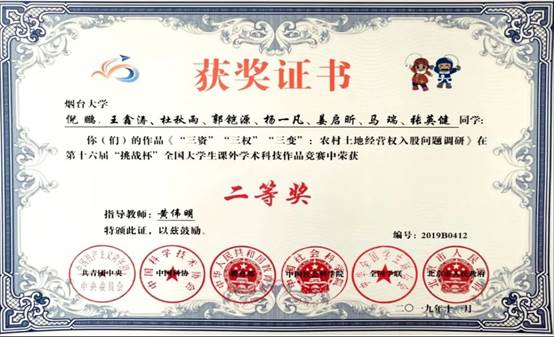 “挑战杯”竞赛国家级二等奖