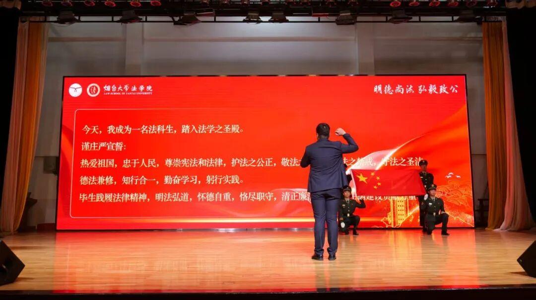 博士研究生、硕士研究生、本科生新生代表依次登台发言。代表们分享了对法学专业的认知与期待,表达了未来勤奋学习、追求卓越,努力成为优秀的烟大法律人的决心。
