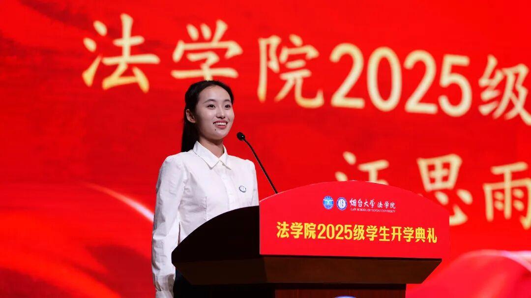 2025级本科生汪思雨作为本科新生代表发言,表达了对烟大抖阴