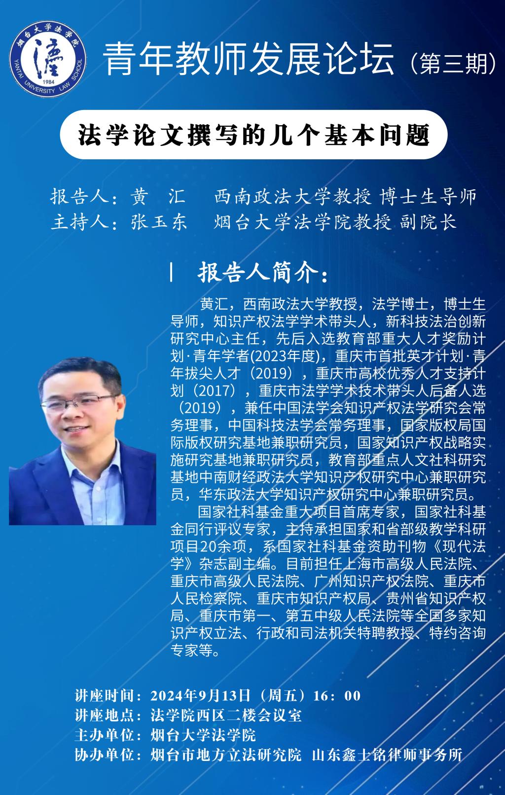 【讲座预告】青年教师发展论坛(第三期):法学论文撰写的几个基本问题