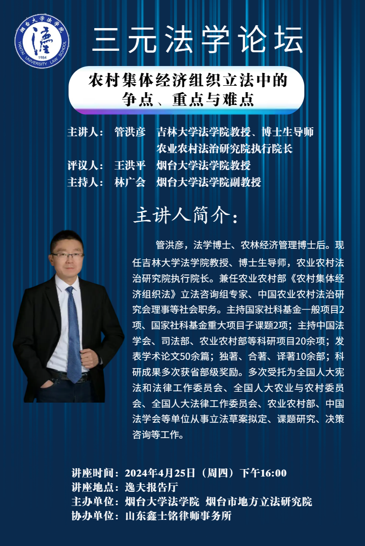 【讲座预告】农村集体经济组织立法中的争点、重点与难点