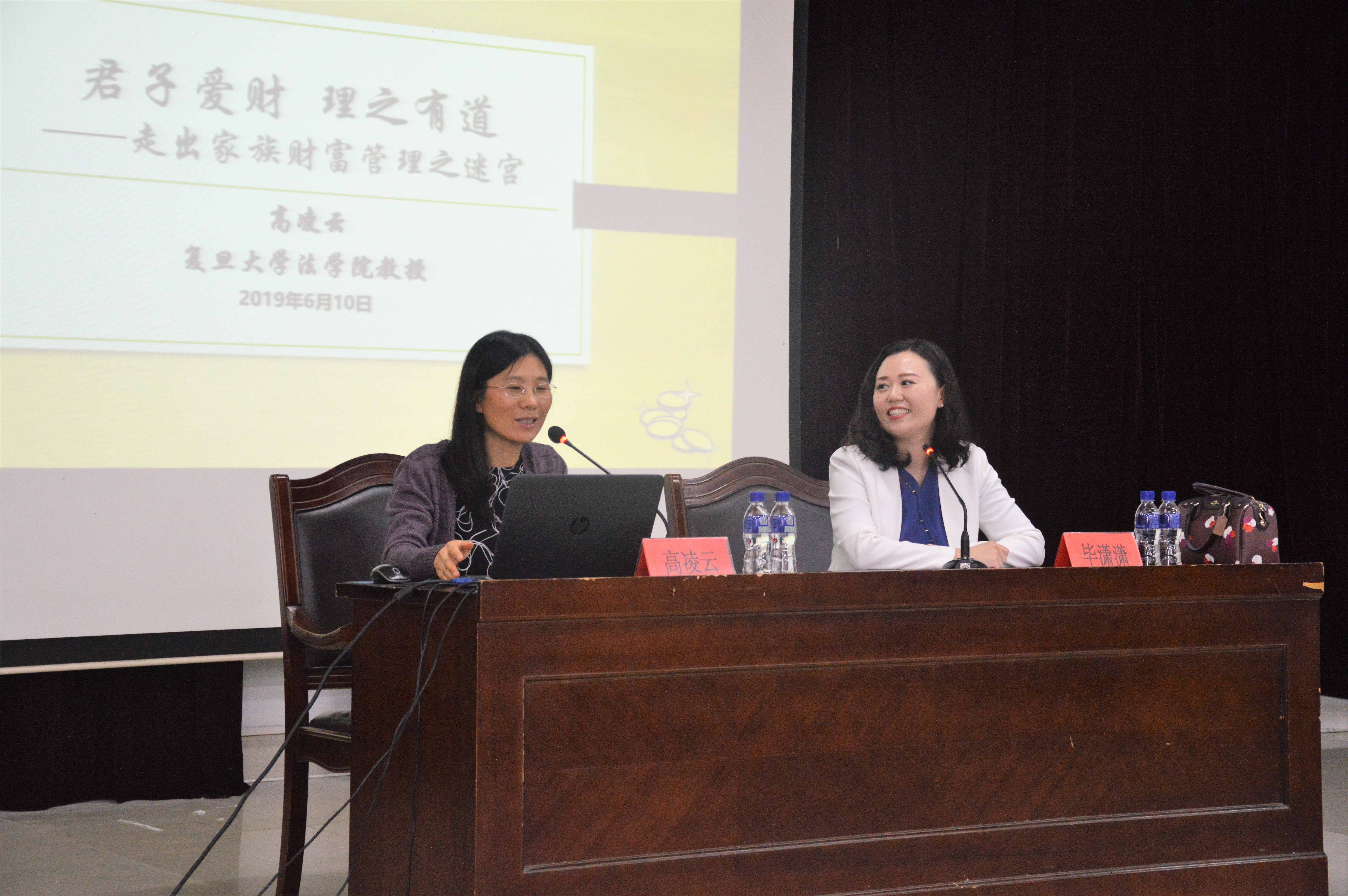 于6月10日下午在二楼报告厅举办了一场“君子爱财,理之有道——走出家族财富管理的迷宫”主题讲座。本次讲座由复旦大学教授高凌云主讲,由毕潇潇老师担任主持人。