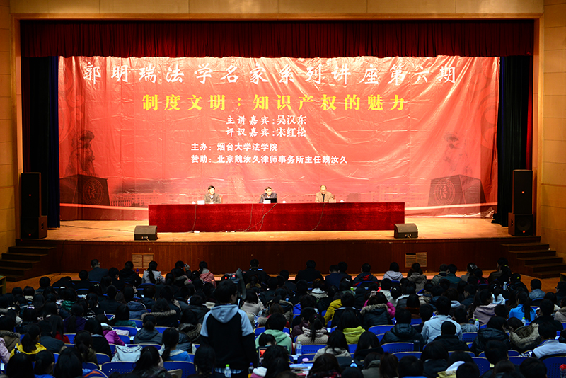 、山东省知识产权研究院和国家知识产权培训(山东)基地的邀请,中国知识产权法研究会名誉会长、中南财经政法大学校长、博士生导师吴汉东教授做客“郭明瑞法学名家系列讲座”第六期,为大家带来题为《制度文明:知识产权的魅力》的学术盛宴,我校师生及慕名而来的校外人士近800人到场聆听,模拟法庭内座无虚席。抖阴