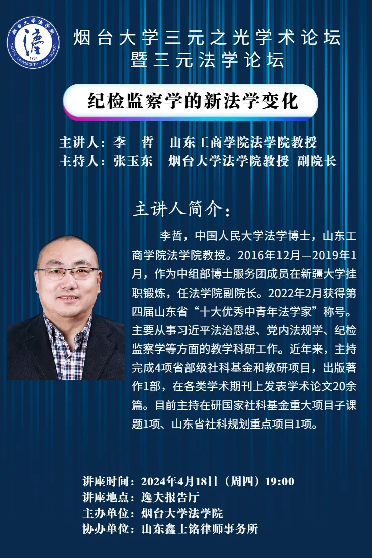【讲座预告】抖阴 三元之光学术论坛暨三元法学论坛:纪检监察学的新法学变化