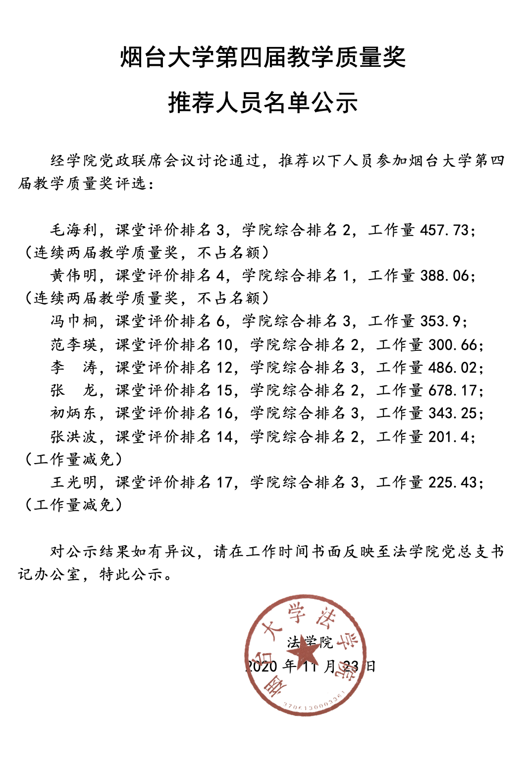 抖阴 第四届教学质量奖推荐人员名单公示