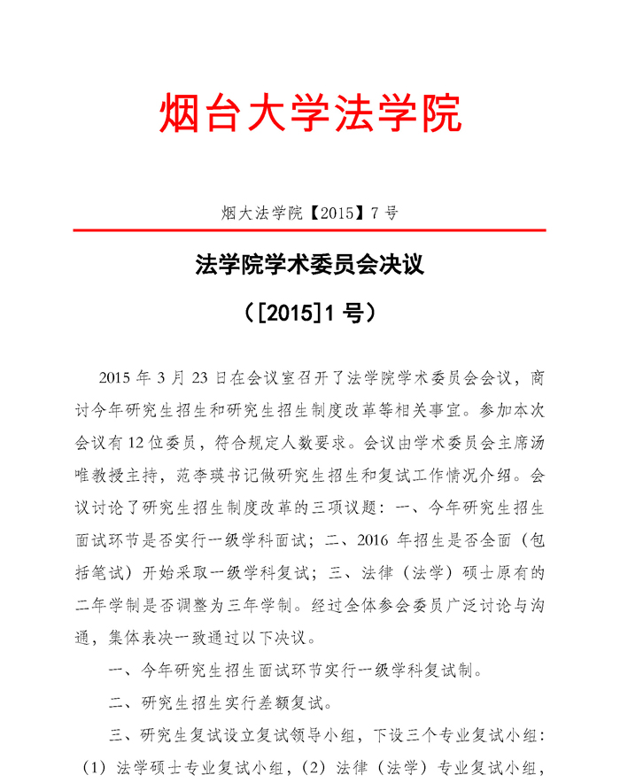 烟大抖阴 【2015】7号抖阴 学术委员会决议(2015年1号)