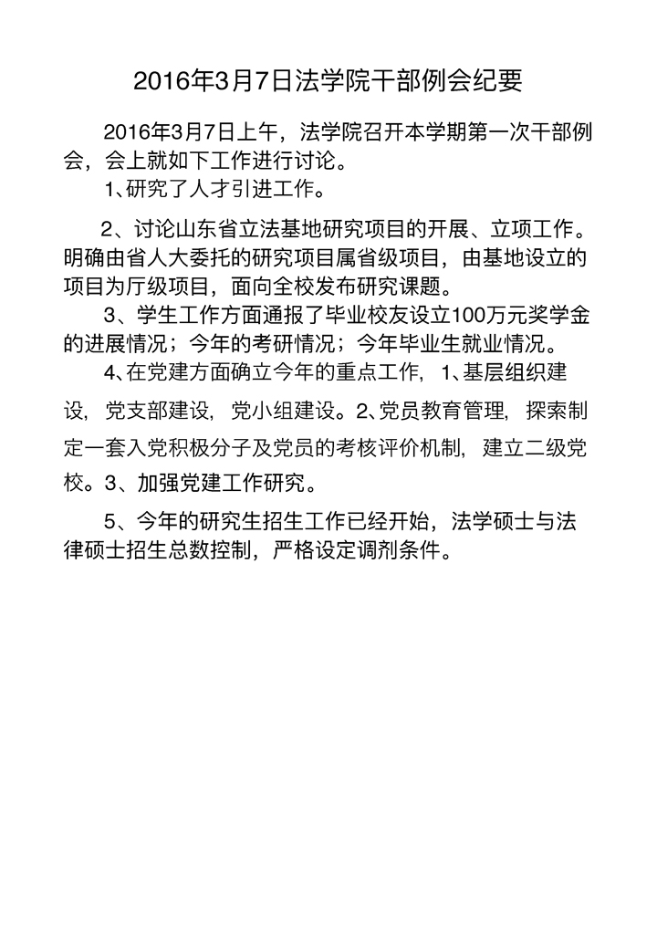 2016年3月7日干部例会纪要