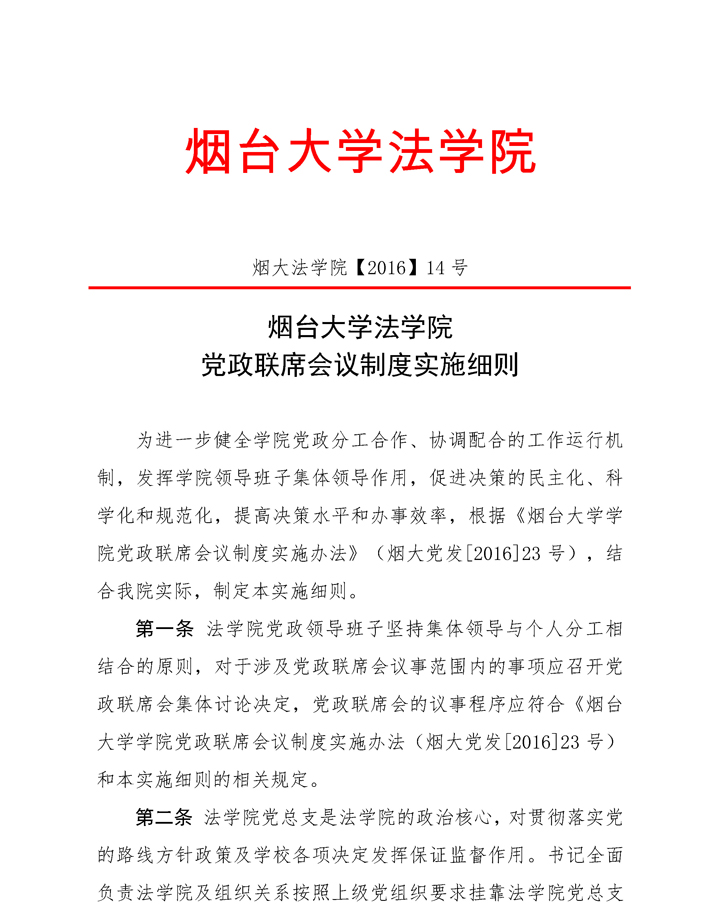 烟大抖阴 【2016】14号抖阴 党政联席会议制度实施细则