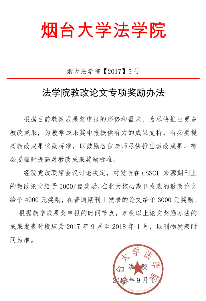 烟大抖阴 【2017】5号抖阴 教改论文专项奖励办法