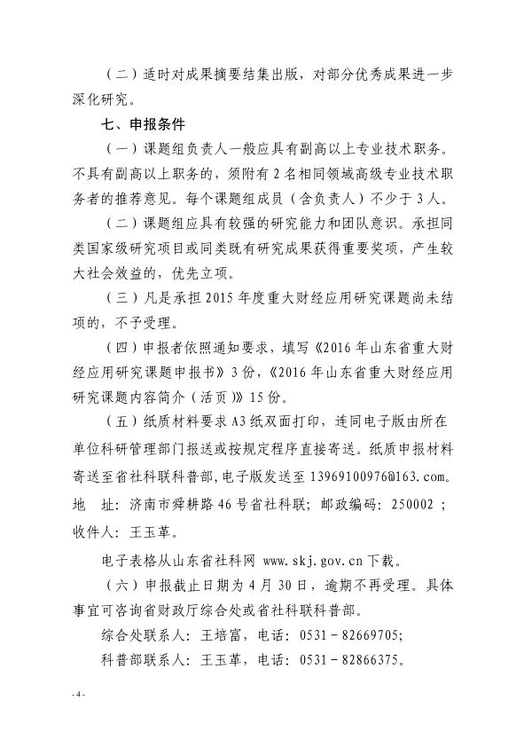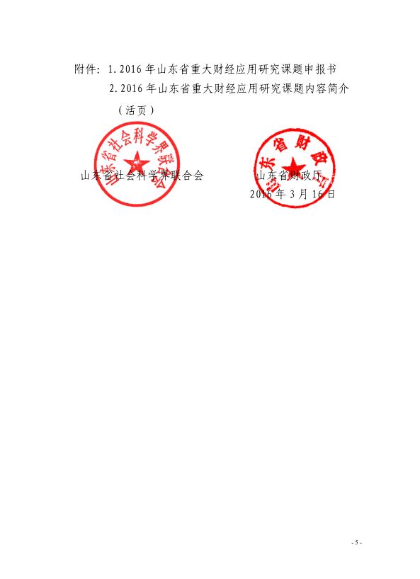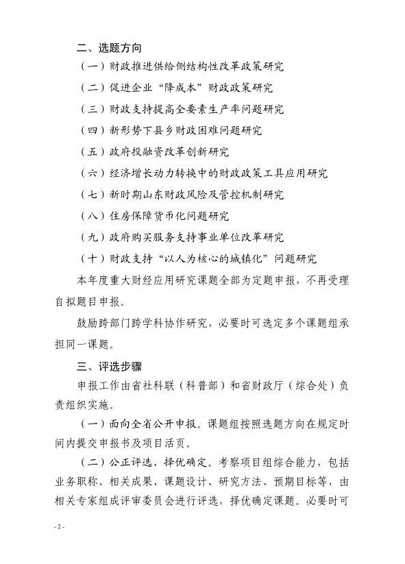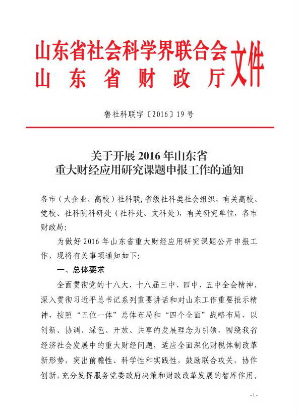 关于开展2016年山东省重大财经应用研究课题申报工作的通知
