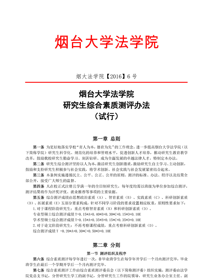 烟大抖阴 【2016】6号抖阴 研究生综合素质测评办法(试行)