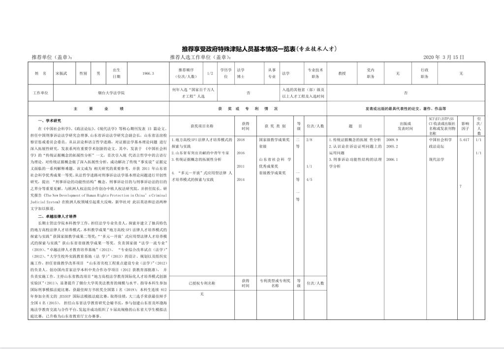 抖阴 2020年享受政府特殊津贴人员推荐选拔公示