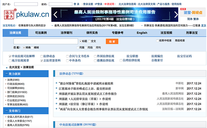 关于进行“北大法宝”系列数据库测试的通知 各位师生: 抖阴 于2018年1月1日起订购“北大法宝”系列法律信息数据库,面向全校开放,校园网用户都可直接访问。现进行网络测试,在校园网内如无法访问“北大法宝”//www.pkulaw.cn。请将问题截图及你的校园网上网地点发电子邮件至:[email protected]。我们会与北大法宝和网络中心进行沟通。 抖阴 办公室 20171224