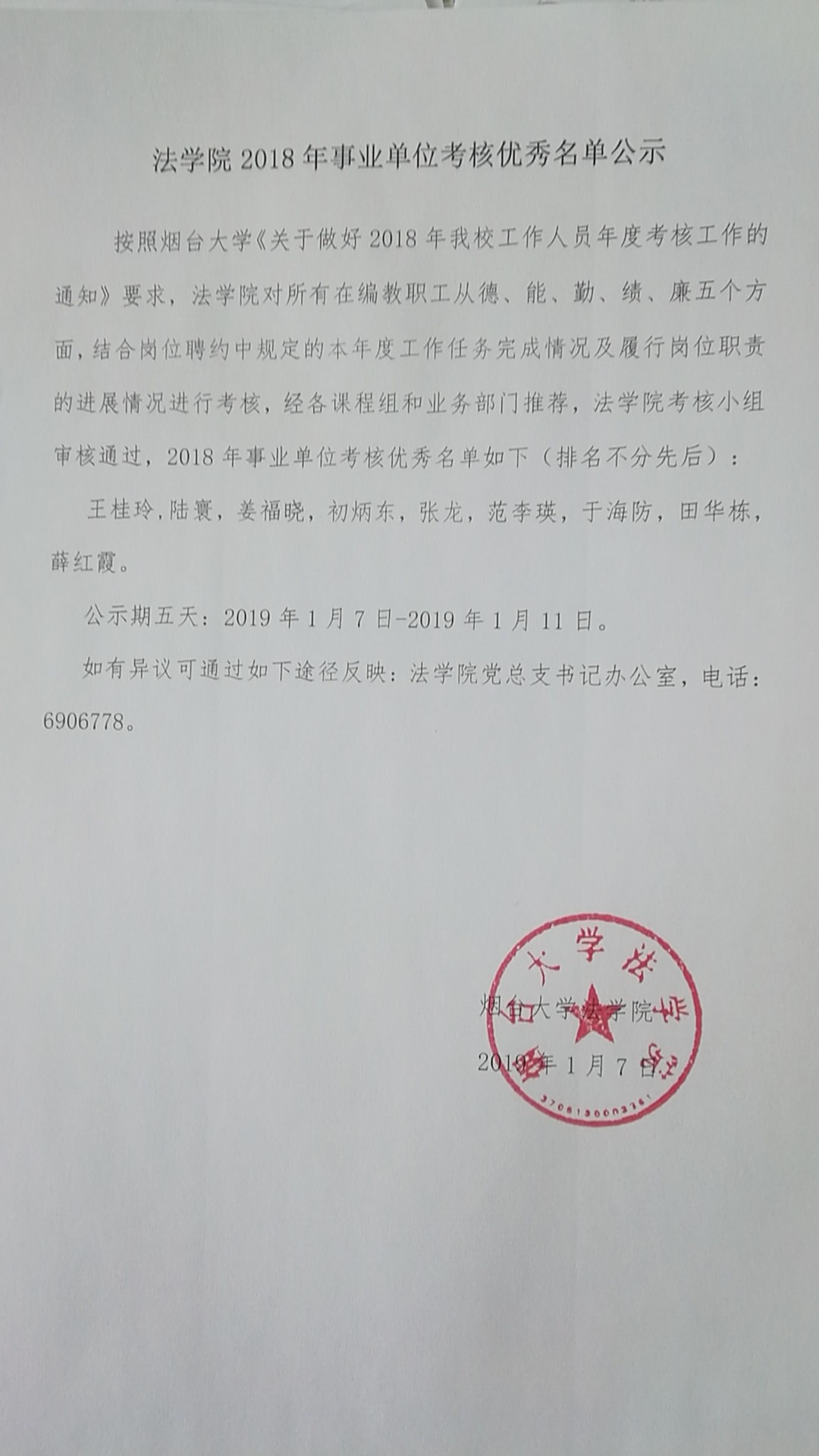 按照抖阴 《关于做好2018年我校工作人员年度考核工作的通知》要求,抖阴 对所有在编教职工从德、能、勤、绩、廉五个方面,结合岗位聘约中规定的本年度工作任务完成情况及履行岗位职责的进展情况进行考核,经各课程组和业务部门推荐,抖阴 考核小组审核决定,2018年事业单位考核优秀名单如下(排名不分先后):