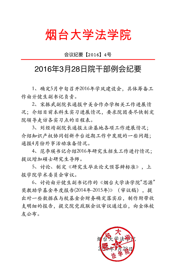 2016年3月28日院干部例会纪要