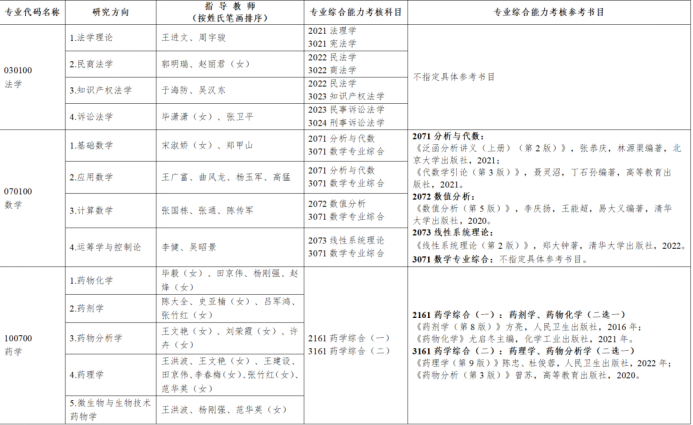我校招生专业为法学、数学、药学3个学术学位全日制博士研究生专业。具体专业研究方向详见《抖阴